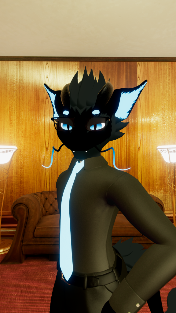 What you see below is a video and a few pictures of my main Avatar wearing a Three Piece Suit, but with a twist! The Tie on it was modified on my own to have natural physics in VRChat through the use of the VRC Avatar Dynamics & PhysBones system.